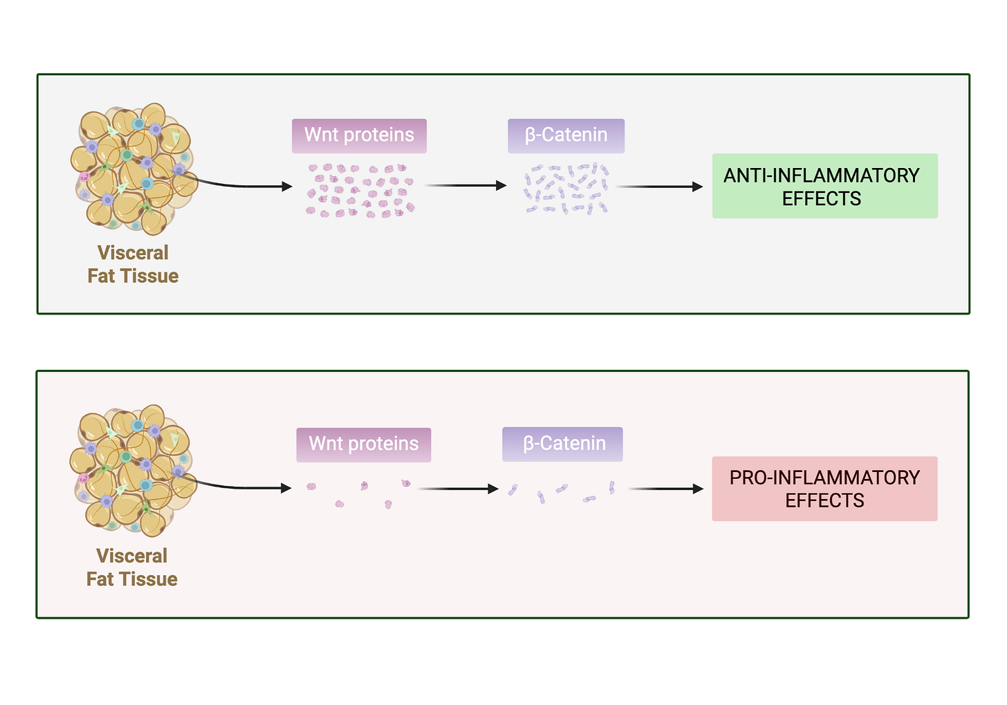While there’s limited direct human research linking beta-catenin, Wnt10, and inflammation from visceral fat, the overall picture aligns with extensive evidence that visceral fat promotes systemic inflammation. And inflammation, in turn, is strongly tied to chronic disease risk.