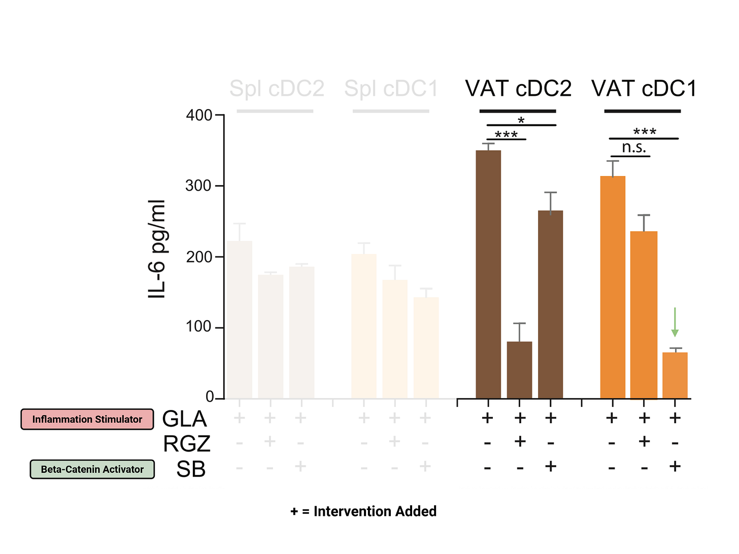 The researchers then looked at how beta-catenin is activated. One key activator is a signaling protein called Wnt10, which is released by visceral fat. When Wnt10 was applied to dendritic cells, IL-6 levels dropped just as they did with a direct beta-catenin activator, confirming that Wnt10 helps trigger beta-catenin’s anti-inflammatory action.