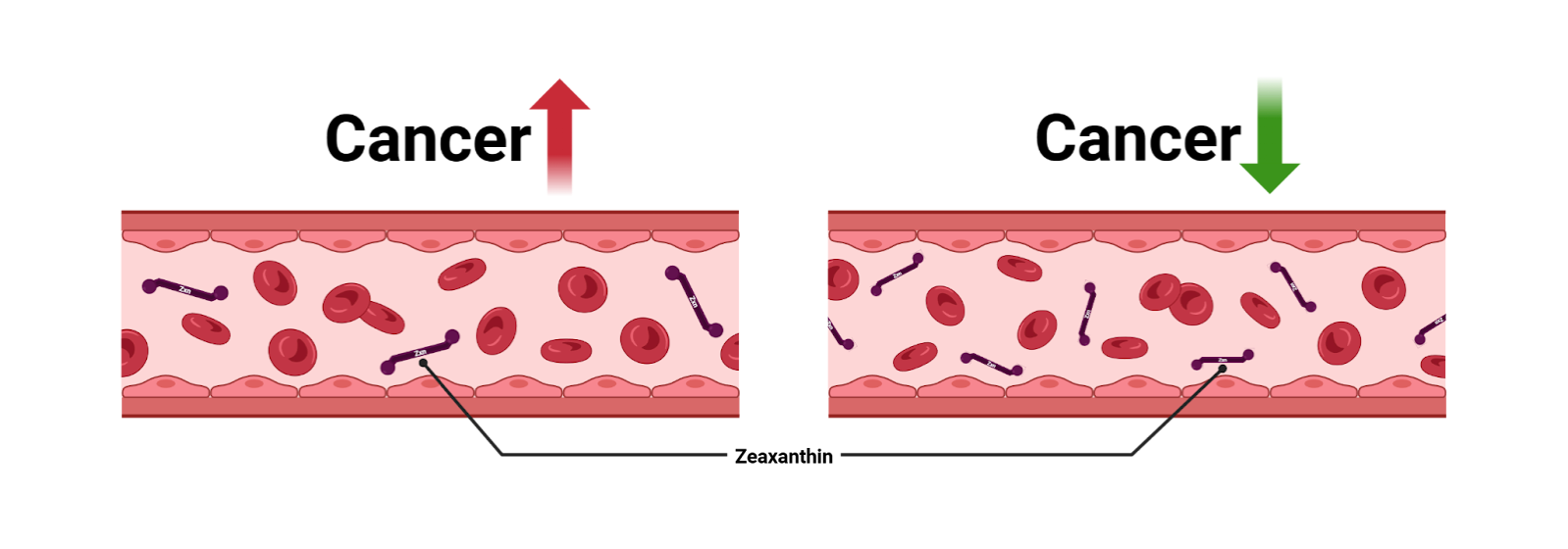 For cancer, we’re working with a different mix of evidence. On one side, we have mechanistic and animal studies showing that zeaxanthin can slow tumor growth and enhance T-cell function, both alone and in combination with immunotherapy. On the other side, we have long-term observational studies in humans, where zeaxanthin intake or blood levels are tracked over years and then related to cancer outcomes, especially breast and bladder cancer.
