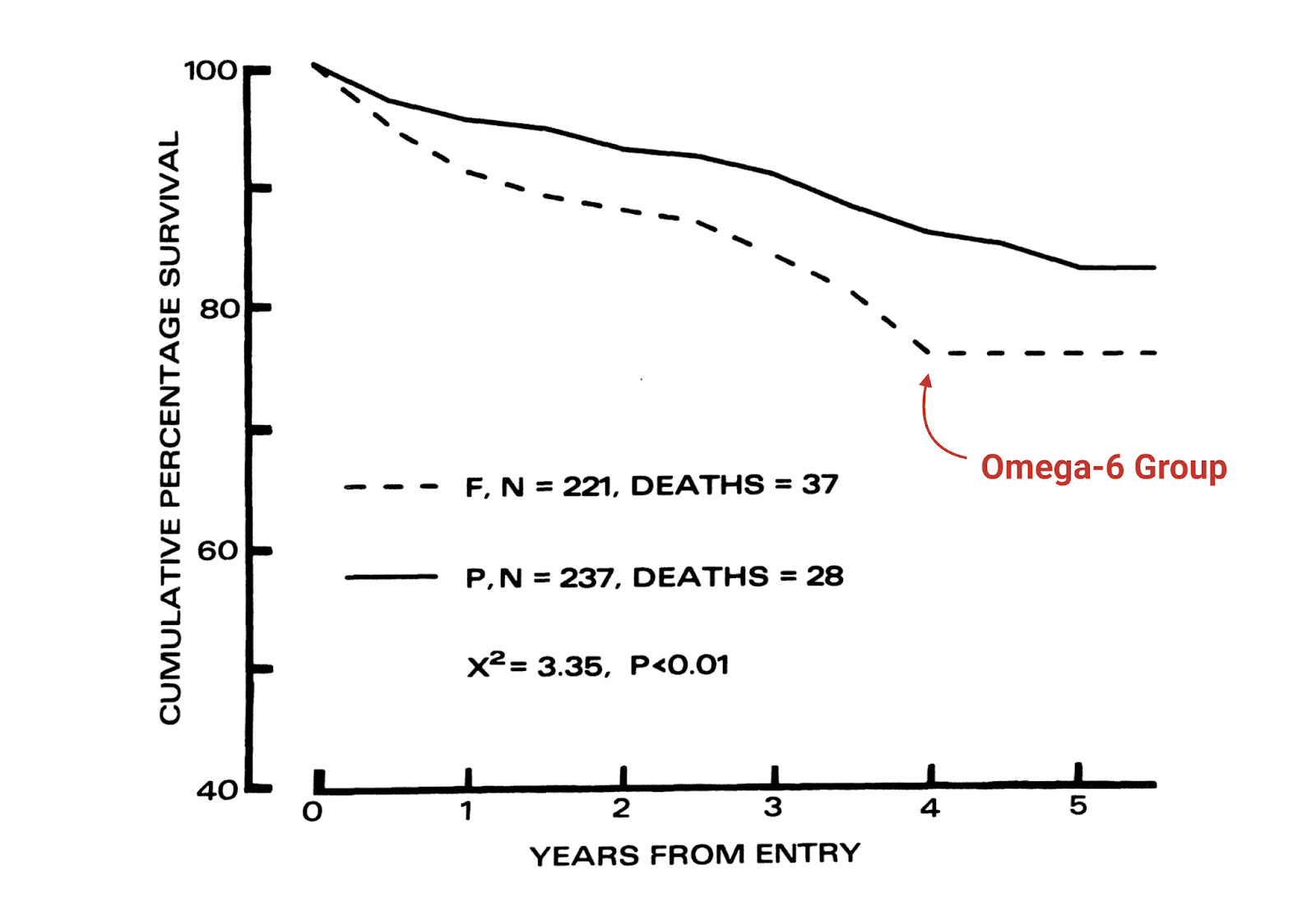 The Sydney Diet Heart Study, conducted in the 1960s, randomized participants to either continue their usual diet high in saturated fat or to switch to a diet rich in polyunsaturated fats—primarily omega-6 fats from safflower oil and margarine. The re-analysis of this study [478], published decades later, made headlines for its striking findings: replacing saturated fat with seed oils was associated with a 62% increase in all-cause mortality.